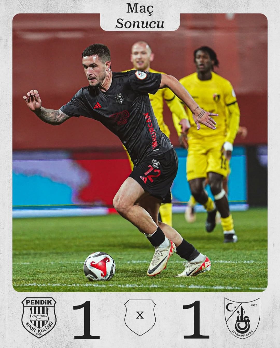 Trendyol 1. Lig 31. Haftasında Pendikspor sahasında karşılaştığı İstanbulspor ile 1-1 berabere kaldı.